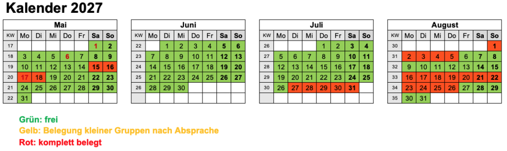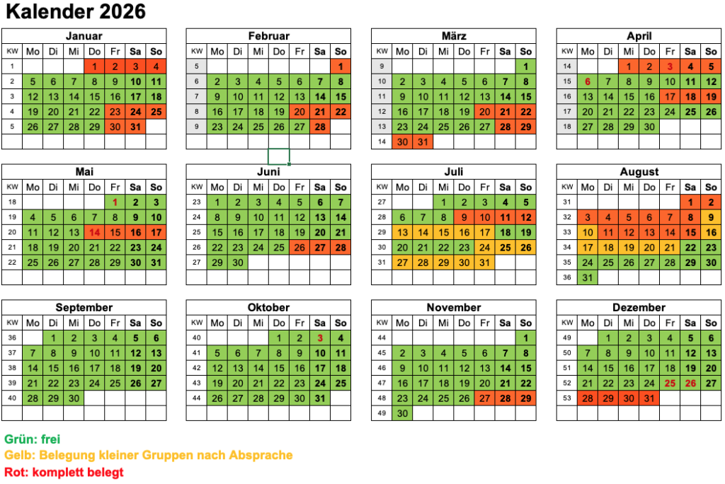 Schickt uns gerne eine Anfrage mit Angabe des Zeitraums, der Personenzahl und was ihr gerne nutzen wollt!
