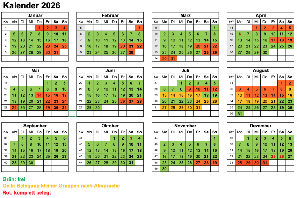 Schickt uns gerne eine Anfrage mit Angabe des Zeitraums, der Personenzahl und was ihr gerne nutzen wollt!